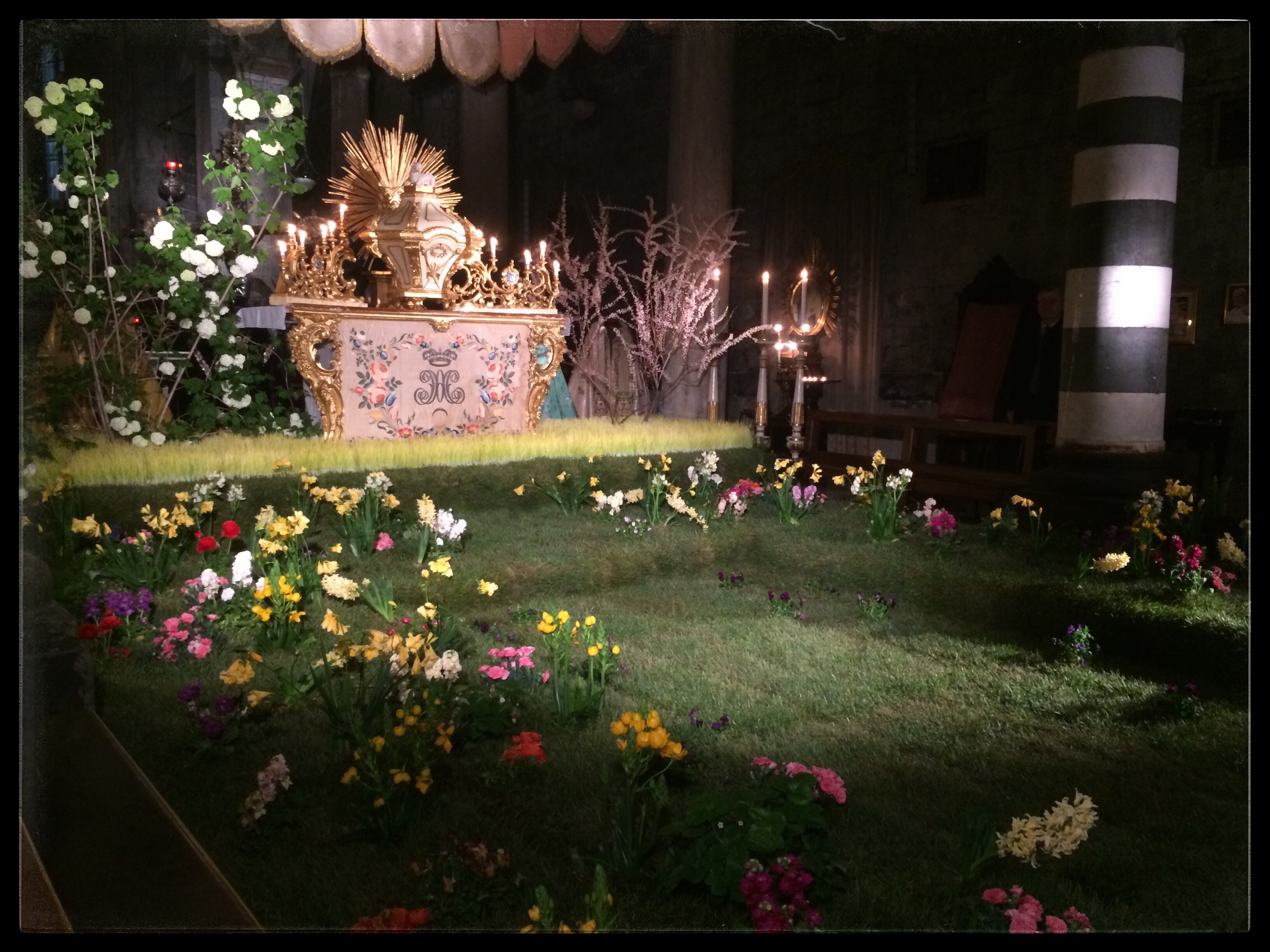 C’è questa cosa che nelle chiese di alcune città (mica tutte) dal Giovedì che precede Pasqua fino al primo pomeriggio del Venerdì, cioè nel giorno in cui è stata istituita l’Eucarestia, si usa meditare per gesti immagini e spazi sulla presenza del corpo di Cristo in un pezzo di pane.