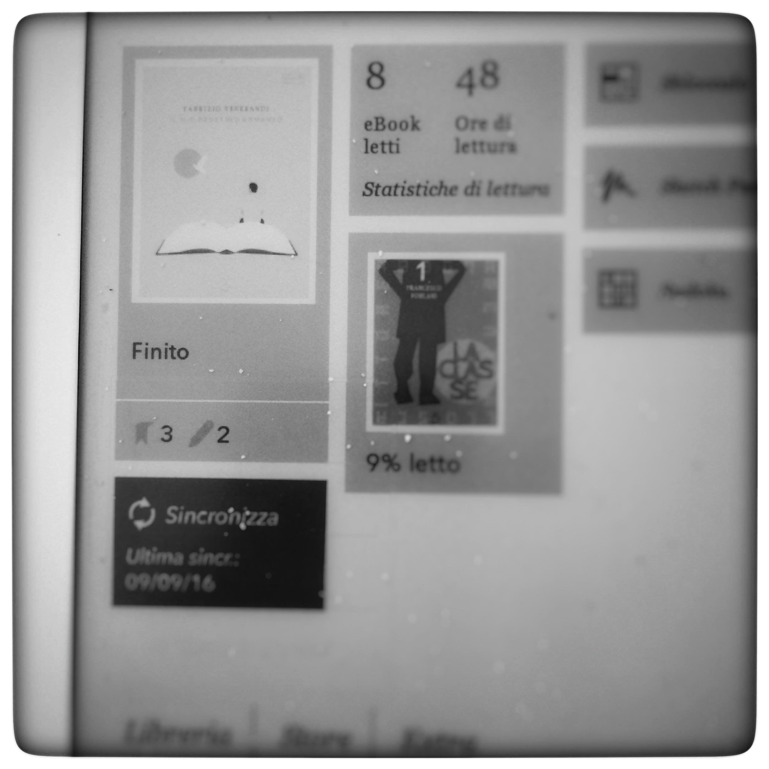 finisco di leggere questo libro al sole. vento, mare, tanta sabbia dappertutto e l'apposito inzicchio libroso digitale mi dice "uh l'hai finito" ah bene penso son soddisfazioni posso andare a fare un bagno, ma prima scatto una foto dell'attimo che così la metto sul blog